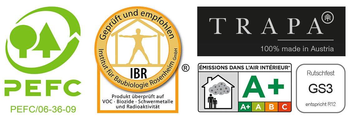 TRAPA legt großen Wert auf den sorgsamen und verantwortungsvollen Umgang mit Mensch und Umwelt. Daher stammt das Holz für TRAPA-Produkte aus PEFC-zertifizierter, europäischer Forstwirtschaft. Auch das Unternehmen selbst ist zertifiziert. PEFC (Programme for the Endorsement of Forest Certification Schemes) ist eine weltweit tätige Institution zur Sicherstellung nachhaltiger Waldbewirtschaftung. Das PEFC-Zertifikat basiert auf den strengen Kriterien der europäischen Forstminister zum Schutz der Wälder. Die Einhaltung der hohen Standards wird von unabhängigen Zertifizierungsstellen kontrolliert.
